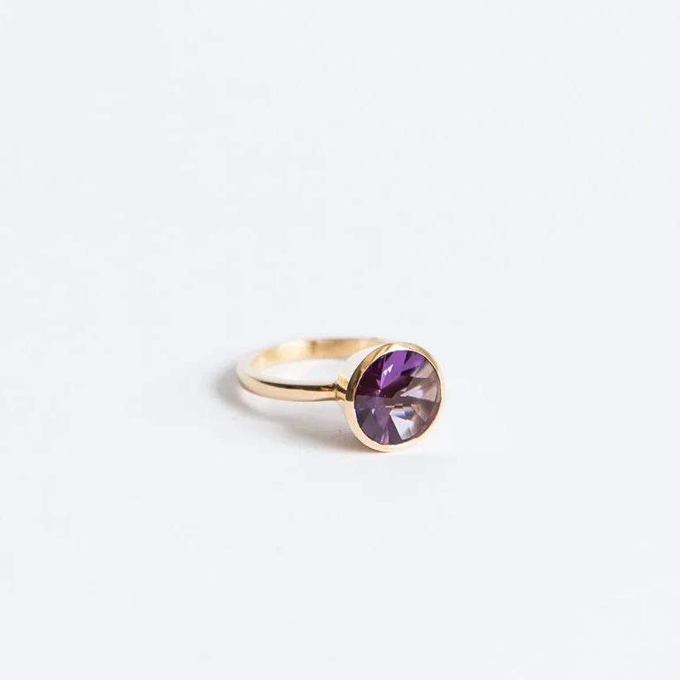Amethyst im Stern-Schliff und in einer konischen Fassung gefertigt.
