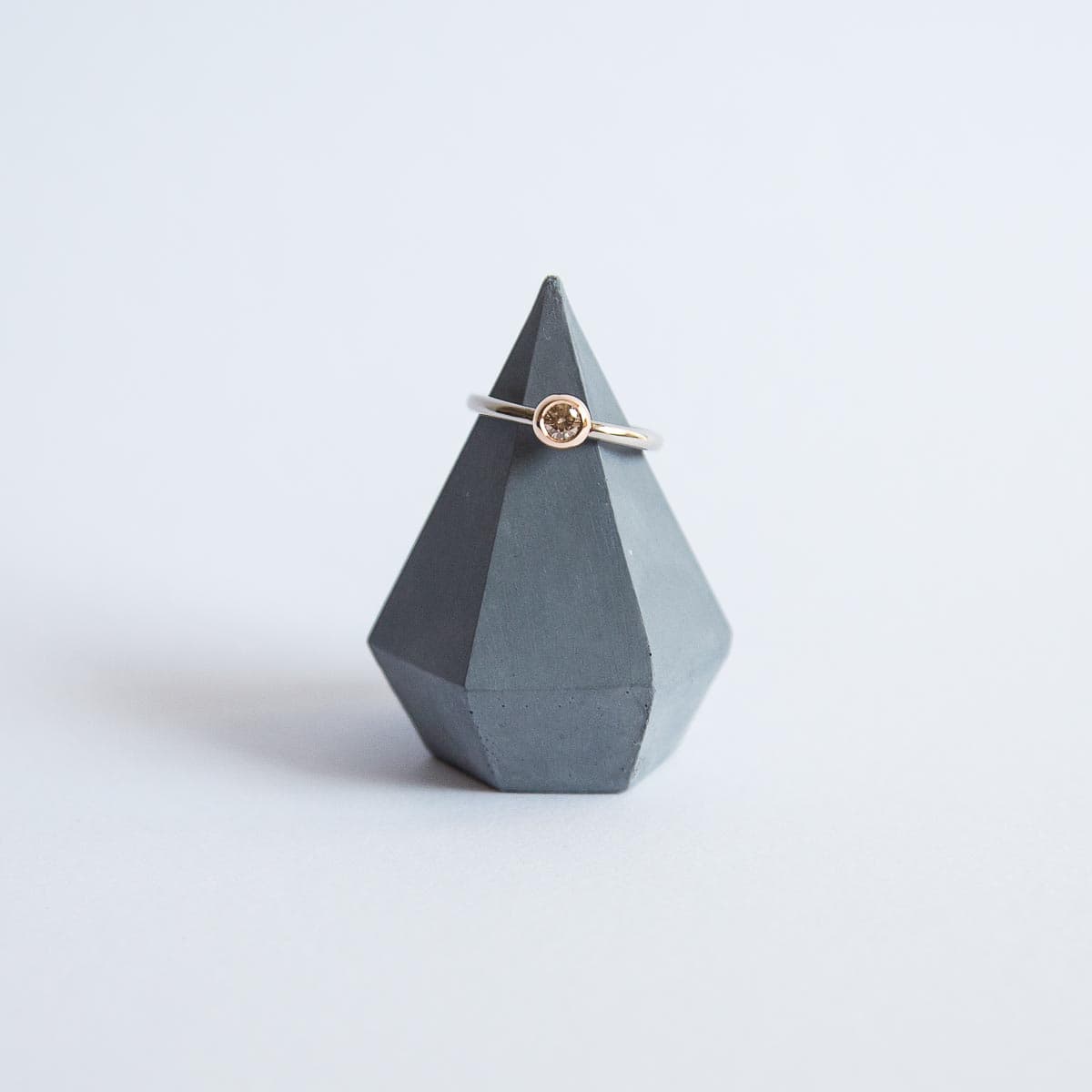 Rotgoldene 585/- Donutfassung mit 0,33 ct sherryfarbenem Diamant.