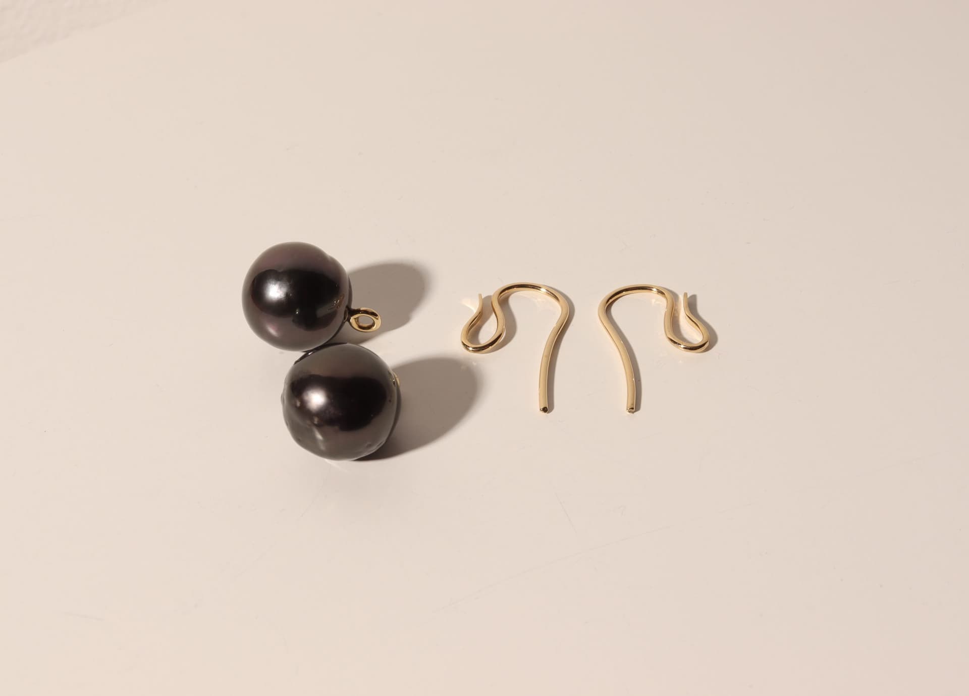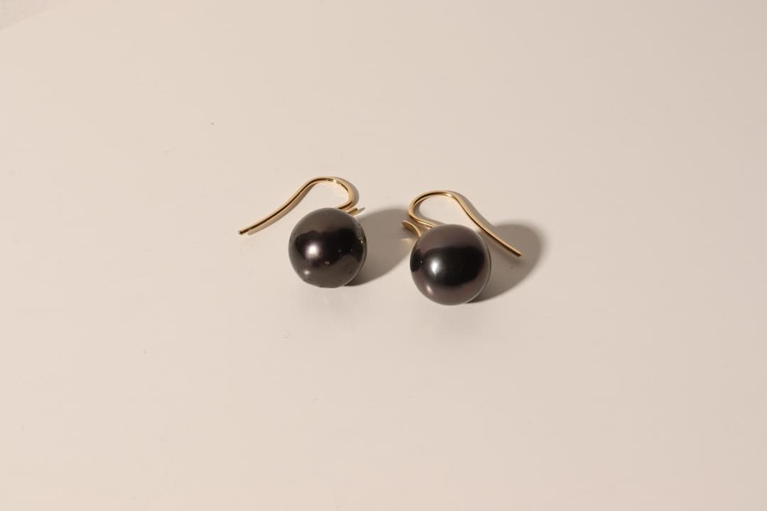 Ohrbügel in 750/- Gelbgold poliert mit Tahitiperleinhängern.